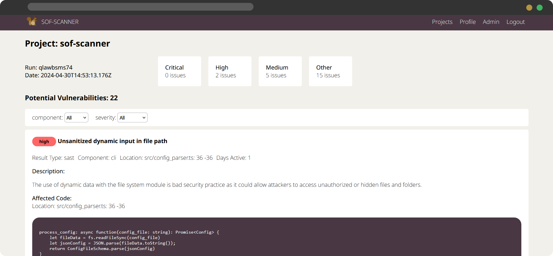 OF Scanner is released on AGPL-v3 and is built on top of industry leading open source security tools. Its modular framework enables you to build integrations to any scanning tool you wish.